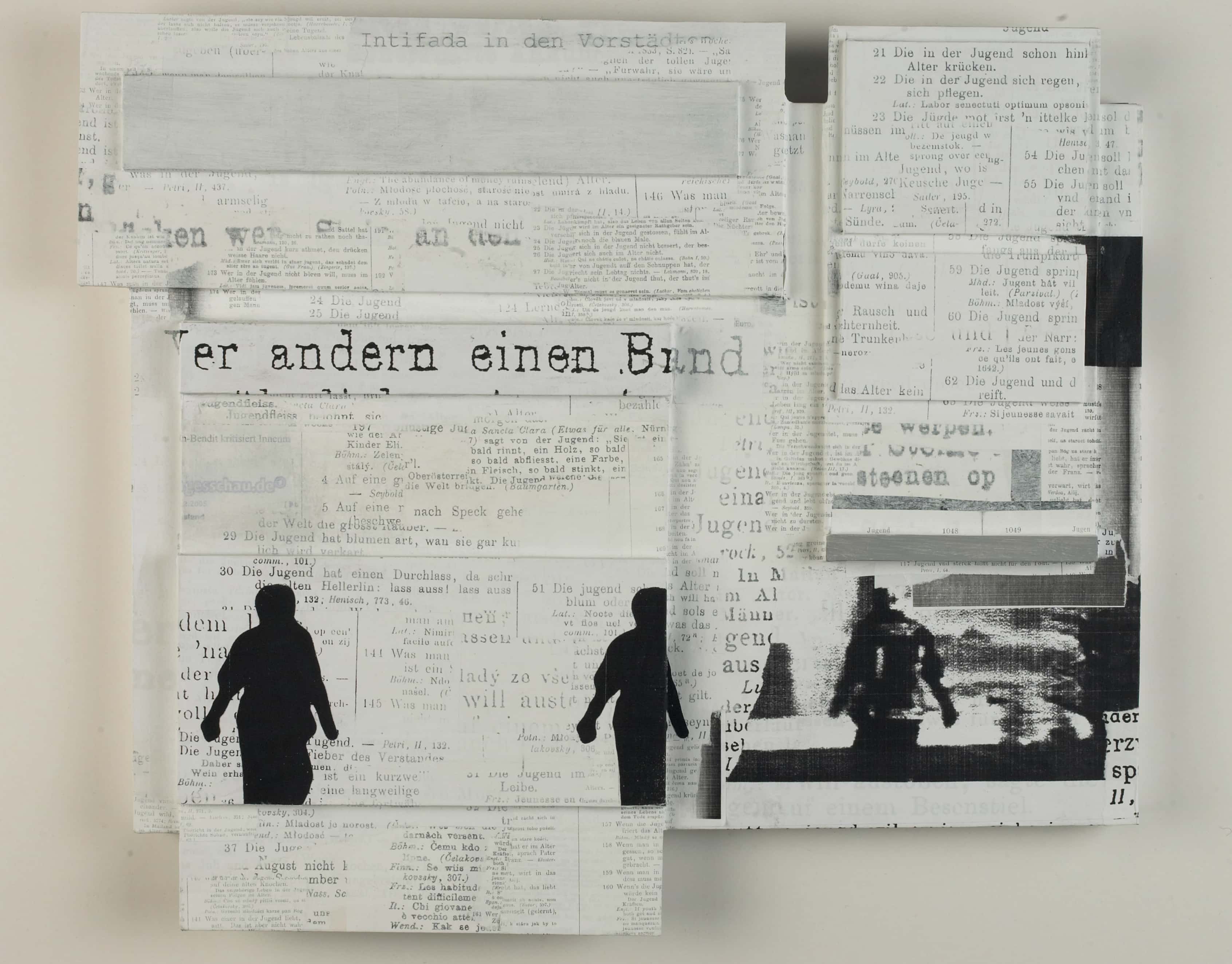 Technik: Acryl auf Collage auf Karton, Relief