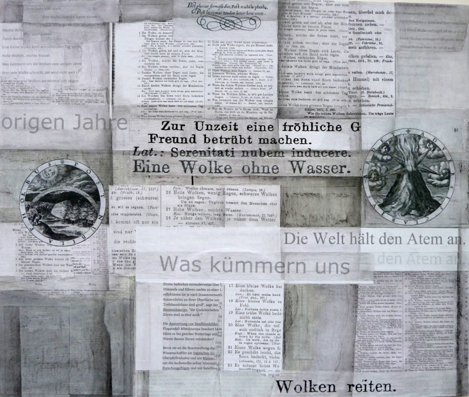 Zwischen meiner Kunst und meiner wissenschaftlichen Arbeit besteht ein enger Zusammenhang. Wissenschaftlich forsche ich zur Emblematik des 16. bis 18. Jahrhunderts, in meiner Kunst experimentiere ich mit der Form des Emblems, mit Lebensweisheiten, Sprichwörtern und Bildikonen. Mich interessiert die Spannung zwischen Zeitgebundenheit und überzeitlichem Geltungsanspruch von Bildern, Metaphern und Texten. Bilder fordern Kommentare heraus, Texte erzeugen Bilder im Kopf. Diese Wechselbeziehung zwischen Bild und Text liegt der Emblematik zugrunde, spielt aber auch in der heutigen Kunst für Illustration, Fotogeschichten und andere Text-Bild-Medien eine Rolle.